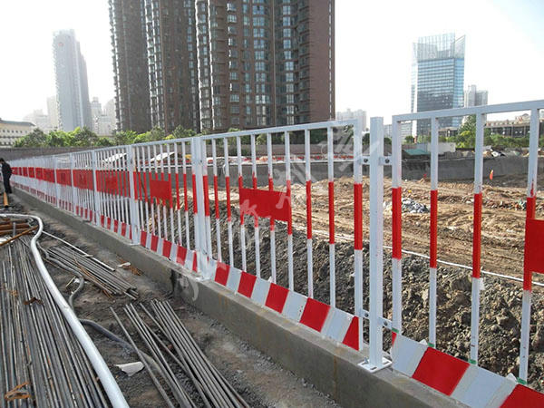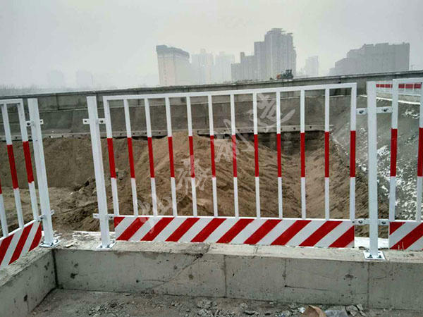 可移动基坑护栏100米,固定护栏1361米,基坑围挡护栏可移动护栏与固定护栏尺寸一致两端固定处加20cm三角支撑。支撑稳固,8cm方管支撑。